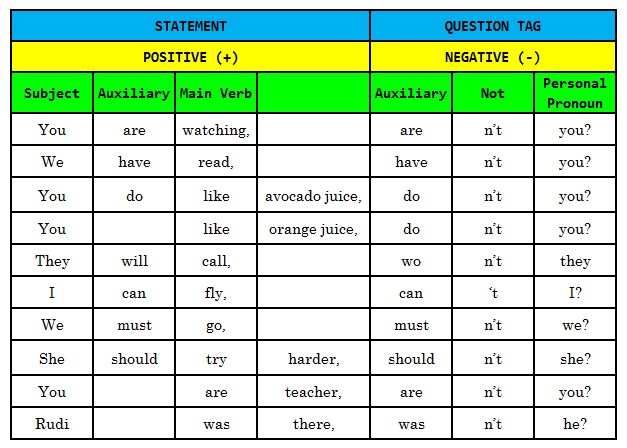 Bentuk dan Contoh Question Tags Dalam Bahasa Inggris 1
